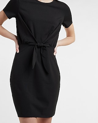 Round Neck Short Sleeve Tie Front Plain Mini T Shirt Dress Beautifulhalo Com
